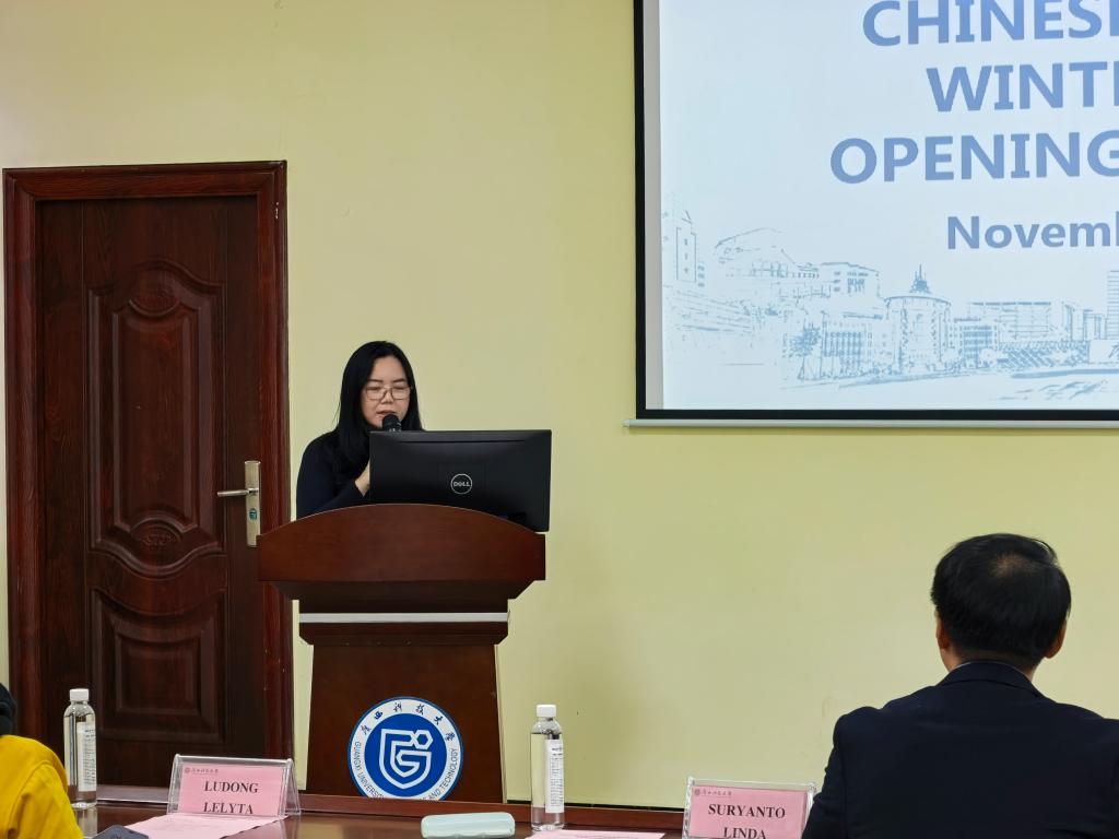 11月19日上午,国际教育学院在基础楼106报告厅举行2025年印尼青少年中华文化冬令营开营仪式。学院副院长李燕洲出席并致欢迎辞,留学生工作办公室主任罗小玉主持仪式。