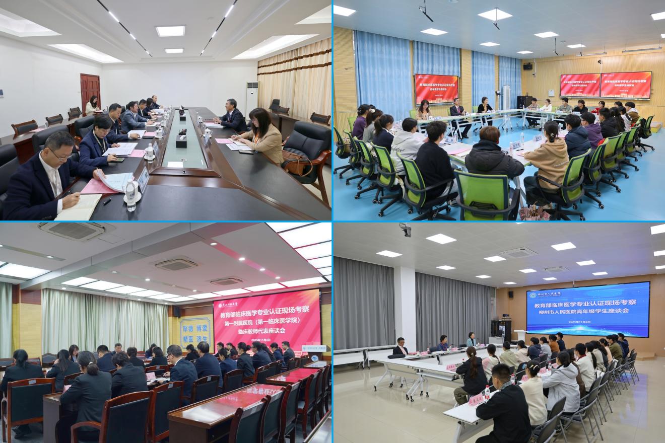 考察期间,专家组走访了规划馆、图书馆、创新创业孵化基地、大学生就业指导中心、学生心理健康教育中心、大学生服务中心、音乐厅、生命科学馆等;考察了学校、医学部、基础医学部、第一临床医学院、全程教学医院柳州市人民医院、友谊社区卫生服务中心、柳东卫生院等,听取了6场汇报会;召开了学校领导、管理干部、教师、学生等9场座谈会;观摩了理论课、临床实践课、临床小讲课、教学查房等8场教学活动;查阅了基础医学部、临床医学院、全程教学医院、部分教研室的教学资料,试卷、管理档案等;对校领导、医学部领导,教务处、教育评价与教师发展中心及临床医学院等部门单位负责人,对医学部教学办主任进行了深度访谈。