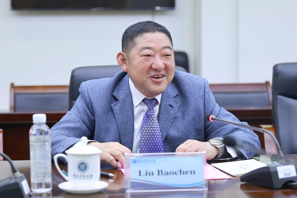 刘宝臣对苏·里格比校长一行表示热烈欢迎,强调广西科技大学爱丁堡龙比亚联合学院获批是两校合作的里程碑,感谢双方的相互支持和共同努力,并从人才培养、科研协同、人文交流、治理机制四个方面对联合学院未来发展提出期望。