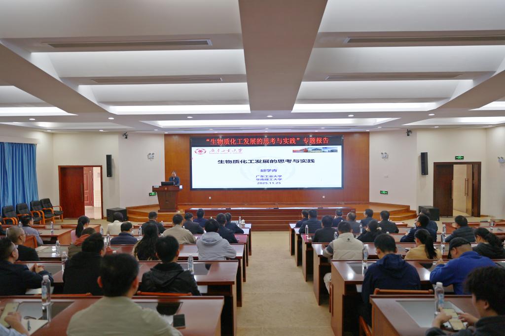 25日上午,邱学青在文昌校区国际报告厅作专题学术报告。学校党委书记赵君,党委常委、副校长李健出席报告会。学校师生代表到场聆听报告。报告以国家能源安全与绿色化工转型为切入点,系统梳理生物质化工的发展趋势、关键科学问题与应用前景,并介绍其团队在木质素资源化利用方面的创新实践和突破性成果。报告内容前沿、视野宏阔,为我校师生进一步把握科研方向、拓展学术思路提供了重要启示。