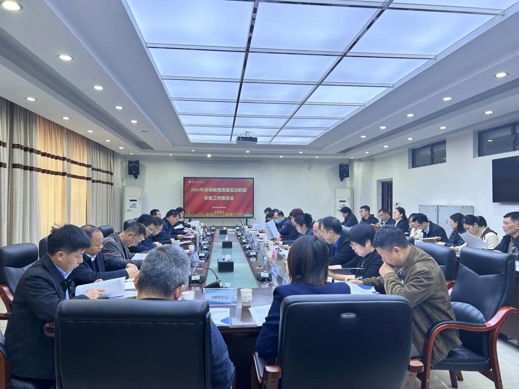 2025年高等教育质量监测数据采集工作领导小组及办公室成员50多人参加会议。