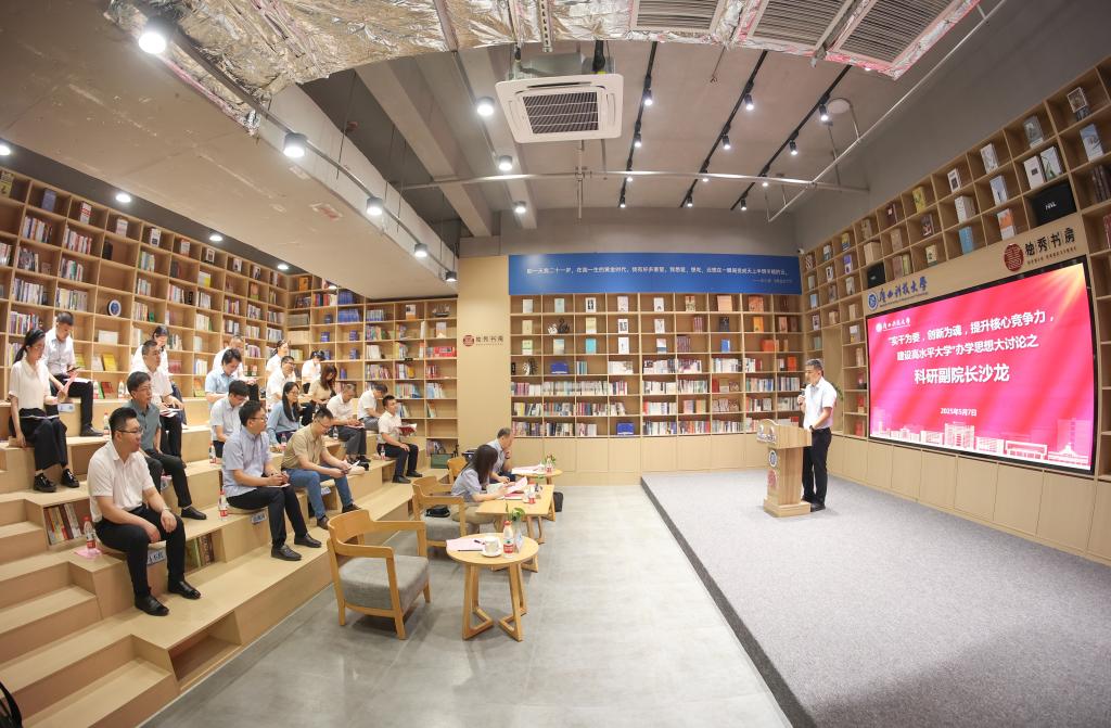 5月7日上午,学校“实干为要,创新为魂,提升核心竞争力,建设高水平大学”办学思想大讨论之科研副院长沙龙在文昌校区独秀书房举行。学校党委常委、副校长邓朗妮、蔡亮出席沙龙。科研处班子成员,各二级学院(部)、附属医院分管科研工作副院长(副主任)及学科带头人代表参加沙龙。