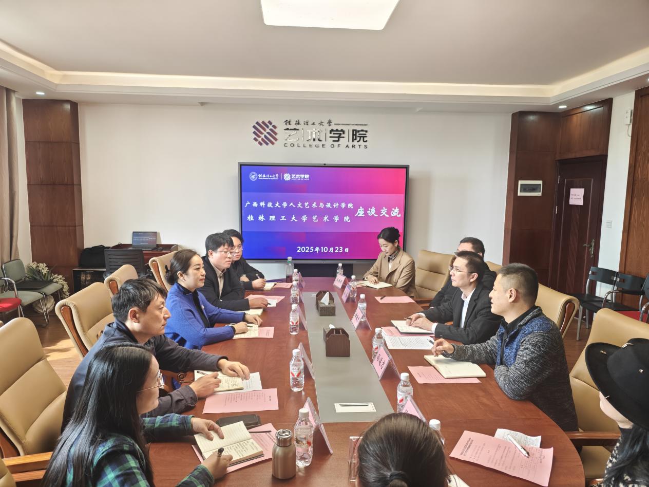 为聚焦新时代高校艺术学院高质量发展目标,精准学习借鉴兄弟高校先进办学经验,10月23日,人文艺术与设计学院全体领导班子成员及系主任代表组成调研团队,先后赴桂林理工大学艺术学院、桂林电子科技大学艺术与设计学院开展专题调研交流。