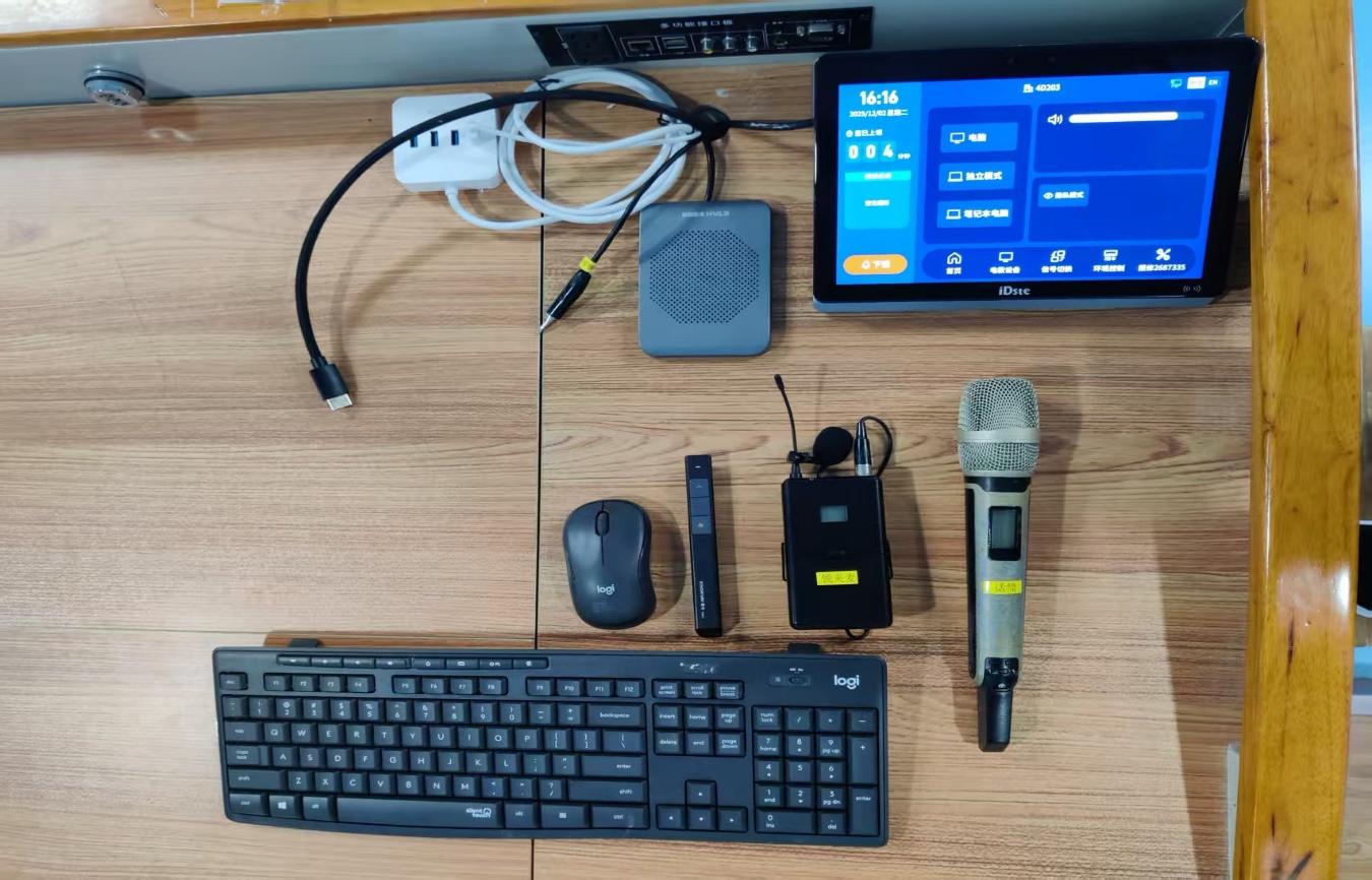 除了门禁系统优化,中控设备的全面升级更是为教学提供了多样化选择。新中控系统支持三种屏幕使用模式:当教师需要进行整体教学展示时,可一键实现所有屏幕同屏显示,确保教室各个角落的学生都能清晰观看;在开展小组合作学习时,又能将各个屏幕分开控制,满足不同小组的展示需求;若教师习惯使用个人笔记本授课,还可通过简单操作自行接入屏幕,适配各类教学设备。同时,系统还整合了空调控制功能,教师通过中控面板即可一键开启空调,并根据教学场景精准选择温度与运行模式,为师生营造舒适的教学环境。