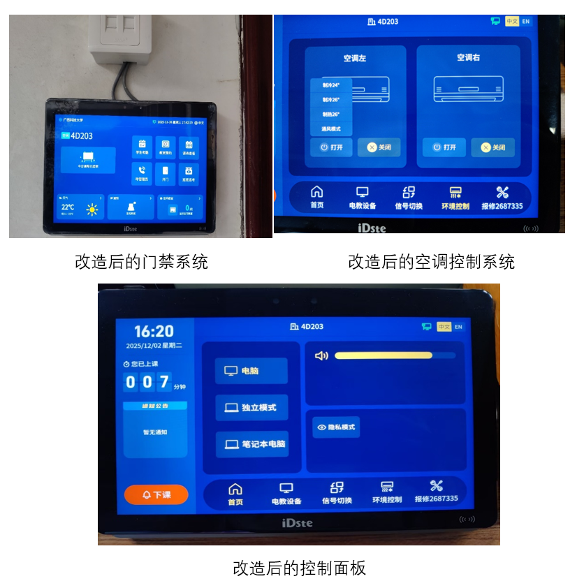 近日,学校网络中心完成文昌校区4d203智慧教室设备升级改造工作。此次升级聚焦教师教学实际需求,推出自助刷卡使用、多模式屏幕控制、远程协助等一系列智能化功能,大幅提升了智慧教室的使用便捷度与管理效率。智慧教室的升级改造是继文昌校区多媒体教室教学设备升级改造之后,学校数智校园建设的又一重要成果。