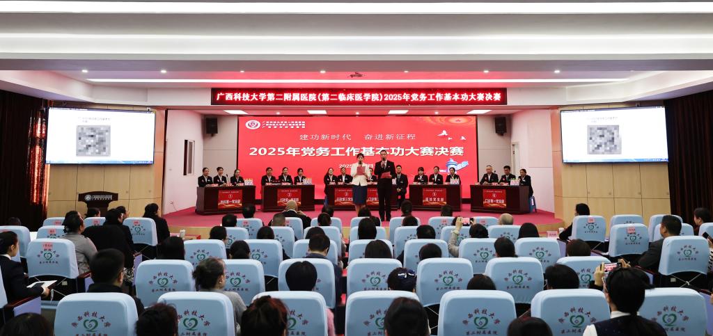近日,第二附属医院(第二临床医学院)举办2025年党务工作基本功大赛决赛。大赛设“党务知识竞赛”和“党建品牌成果展示”两大项目,历经线上初赛、书面案例评审、现场决赛等环节,吸引全院300余名党员、入党积极分子参与,最终有6支晋级决赛的队伍展开激烈角逐。未来,医院将以此为契机,持续推动党建与业务深度融合,把比赛成果转化为改善医疗服务、提升教学科研、助推医院高质量发展的强大动力,以高质量党建引领医院高质量发展。