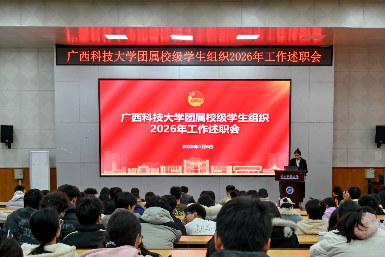 1月6日,学校团属校级学生组织2026年工作述职会在图书馆报告厅召开。学校团委全体干部、各团属校级学生组织成员100余人参加会议。会上,各校级组织负责人围绕核心职能汇报了2025年工作成果和2026年工作计划。学校团委书记蒋智华在强化思想引领、精准服务同学,打造工作品牌、提升贡献度,加强自身建设、锤炼过硬作风等方面作了要求。