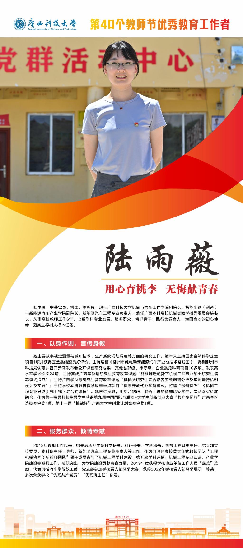 接下来,我们将推出系列报道,为大家介绍我校这些优秀教师。今天就让我们一起走近学校“优秀教育工作者”陆雨薇吧。