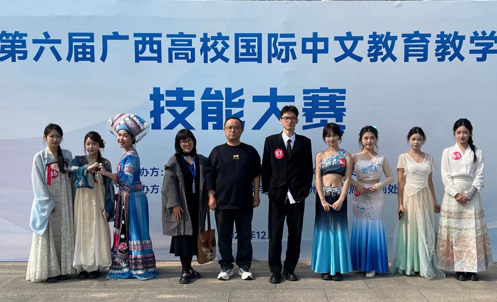 近日,第六届广西高校国际中文教育教学技能大赛在梧州学院顺利落幕。在外国语学院李跃敏、张林微老师带领下,我校本科组选手龙珊珊力拔头筹,斩获大赛一等奖,其余6名队员亦荣获三等奖,创下我校参赛以来最佳战绩。