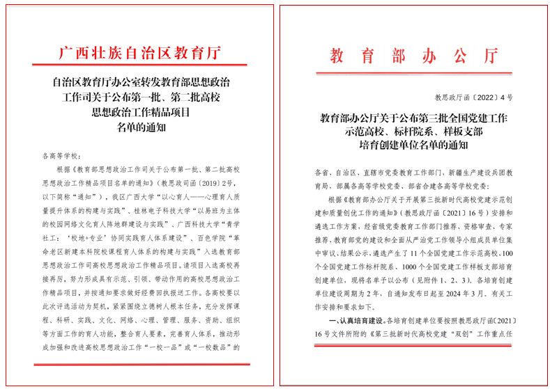 获批教育部第三批“全国党建工作样板支部”1个、入选全国高校思政工作精品项目1项