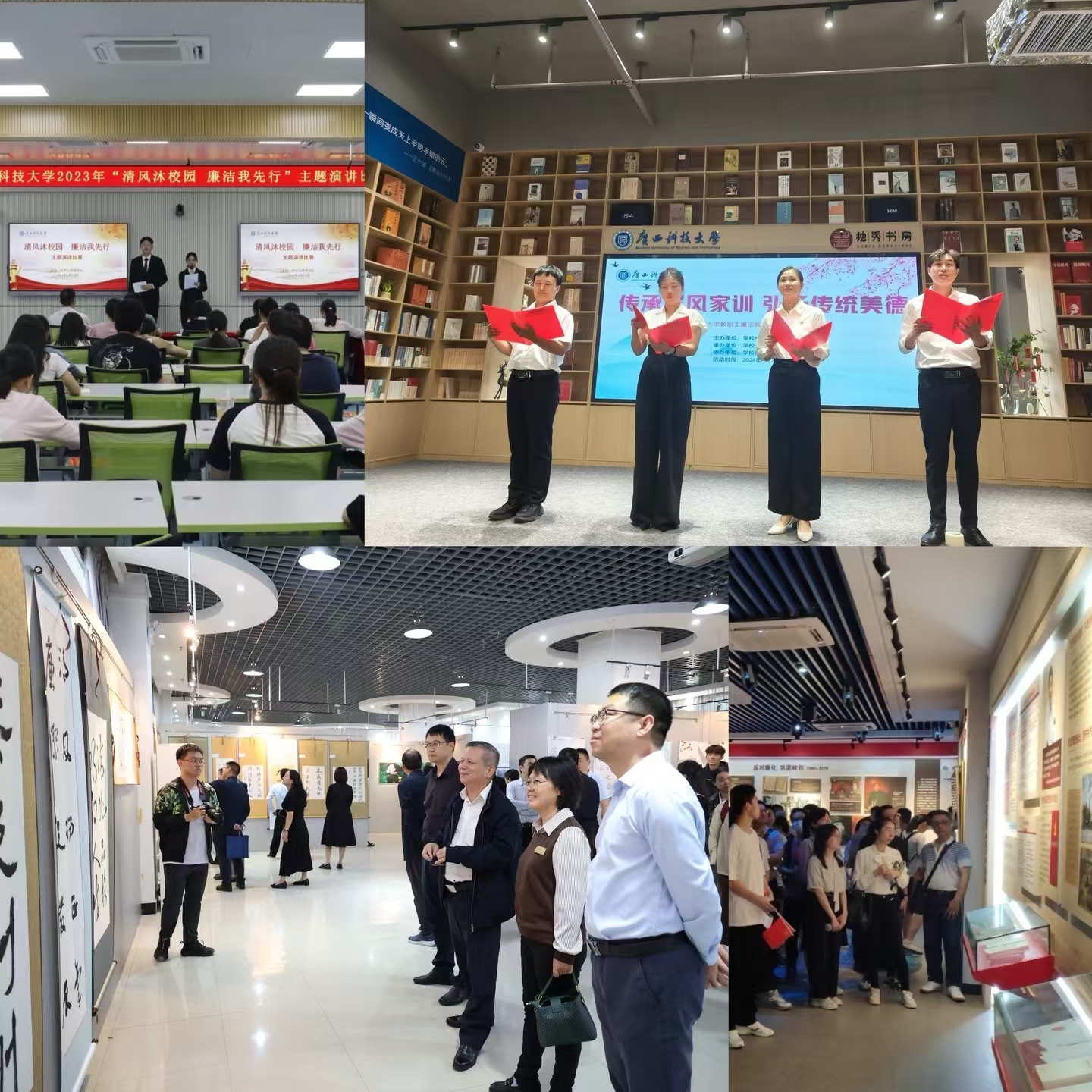 “不想腐”的思想堤坝日益加固。在学校党委的统一部署下全面推进清廉科大建设,多形式开展党性教育,建成学校清廉教育展厅,近5000名师生参观学习接受教育。5年来立项建设廉洁文化项目43项,开展廉洁视频大赛等廉洁文化活动80多场。选送作品获评全国高校廉洁教育系列活动案例展示优秀作品,多项作品获自治区、柳州市特等奖、一等奖等奖项。