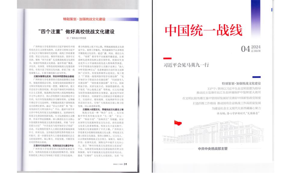 学校统战工作经验做法获中央统战部《中国统一战线》杂志刊登